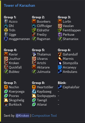 Vi behöver fylla de roller vi behöver först och främst, efter det prioriterar vi de som har högre rank och är det många inom samma rank så prioriterar vi de som skrivit upp sig först.